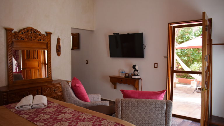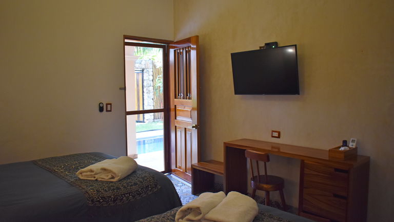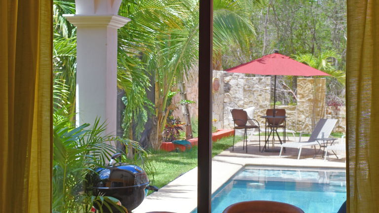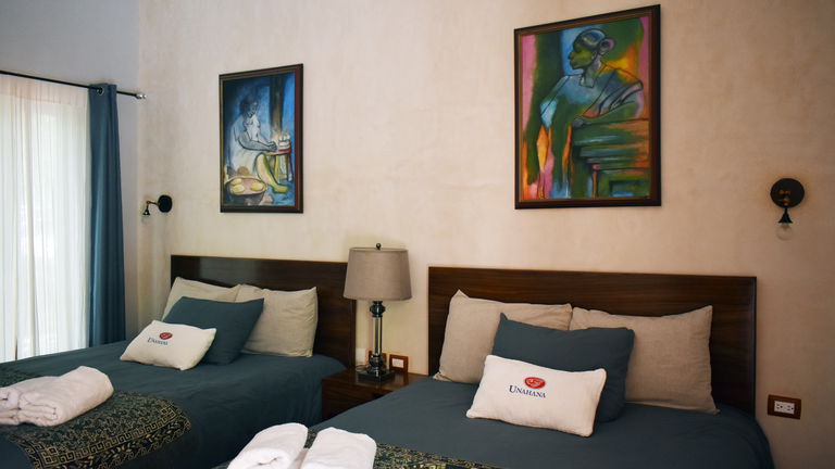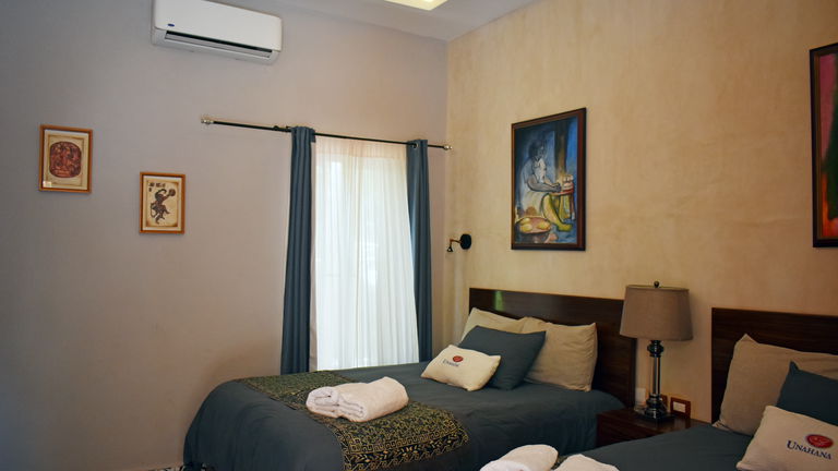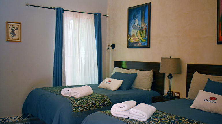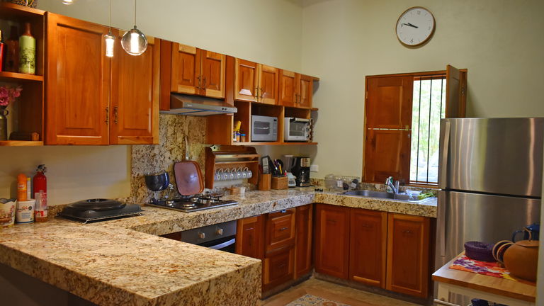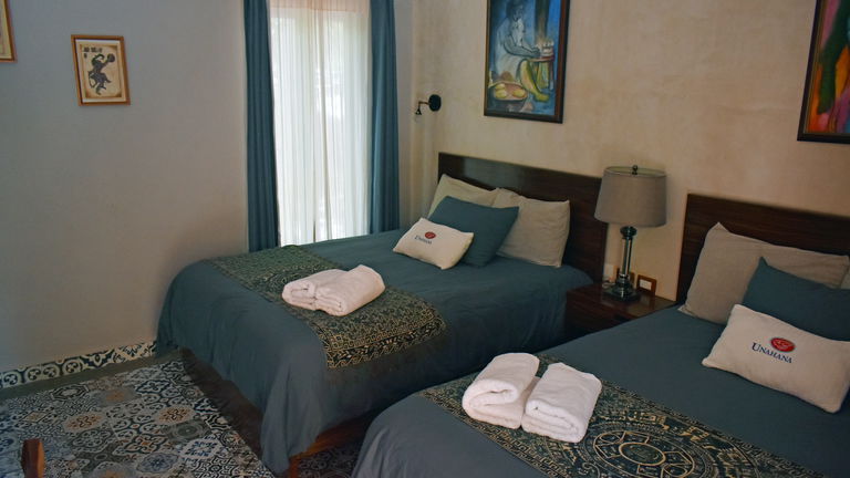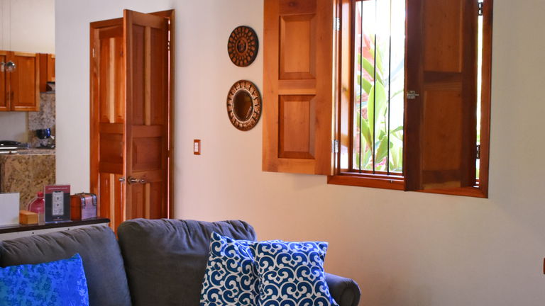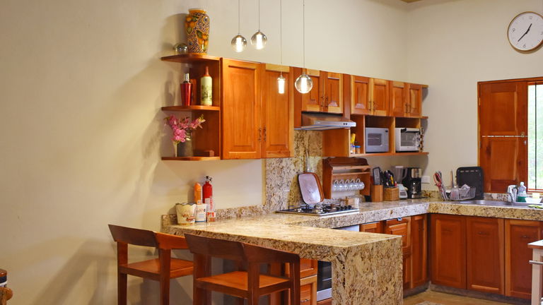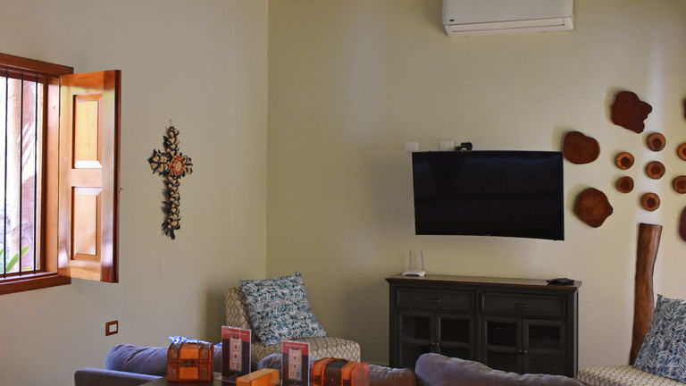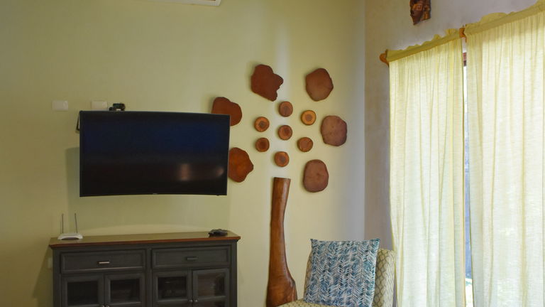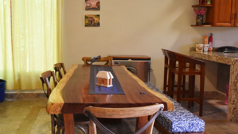 La villa está diseñada para que pase unos días relajantes en un entorno que combina lo antiguo con lo moderno. Rodeada de exuberante vegetación y senderos ideales para recorrer en bicicleta o a pie, Villa Unahana es el lugar perfecto para desconectarse del estrés diario y sumergirse en la serenidad de la naturaleza. Las tres amplias y equipadas habitaciones de la villa desembocan a una acogedora área de terraza, donde la alberca y el jardín con hamacas le invitan a relajarse y disfrutar del verdadero espíritu de las vacaciones. En el interior de la villa, encontrará una cocina completamente equipada para satisfacer todas sus necesidades culinarias, así como un amplio comedor con capacidad para 12 personas, perfecto para disfrutar de comidas en grupo. La sala de estar, equipada con un sofá cama matrimonial, una TV de 60 pulgadas y un sistema de sonido, proporciona un espacio cómodo y moderno para descansar y entretenerse. Cada rincón de la villa ha sido pensado para ofrecerle el máximo confort y bienestar durante su estancia.